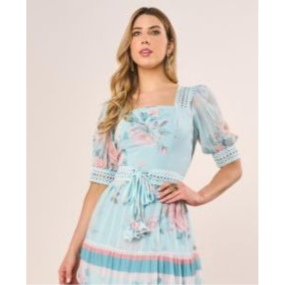 Vestido longo, forrado, decote quadrado gripir no ombro e manga , saias maria, estampa exclusiva floral.